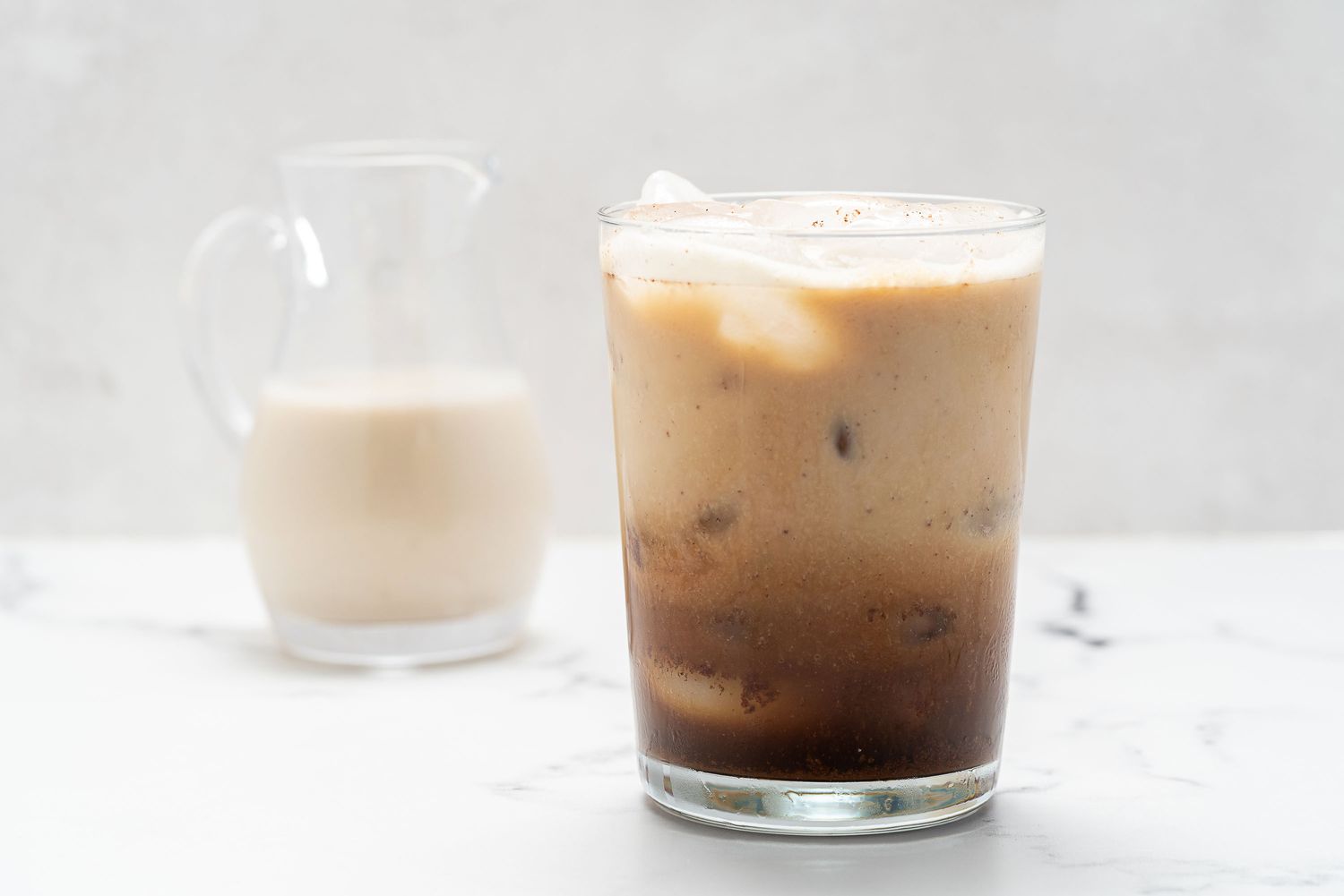 Copycat Espresso frappé au lait d’avoine et au sucre brun.