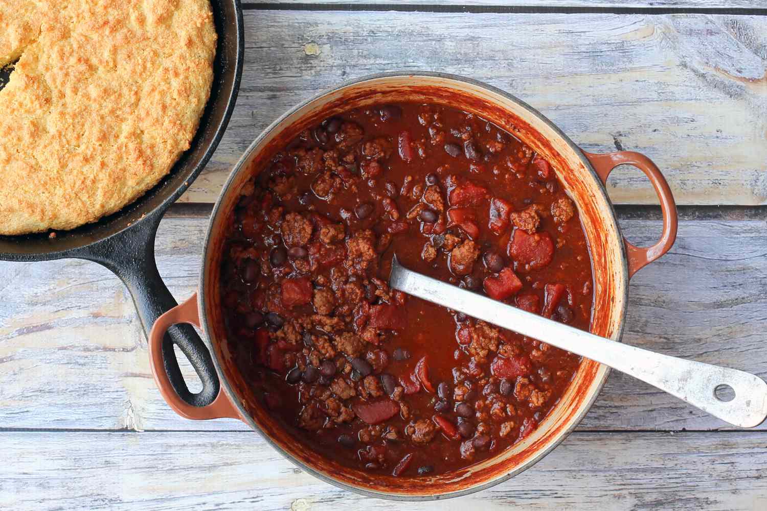 Préparez une plaque de pain de maïs à servir avec le chili, accompagnée d'une salade ou d'une coleslaw, ou servez-le avec du riz chaud et des tortillas chaudes.
