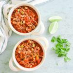 • Idées de Garniture - Garnissez le chili de crème aigre et de coriandre hachée, d'oignons ou d'oignons verts. Ou émiettez des chips de tortilla sur les portions. Du cheddar râpé ou un mélange mexicain fait également une excellente garniture. Vous pouvez également mettre des garnitures optionnelles dans des bols et permettre à votre famille et vos amis d'ajouter ce qu'ils aiment.