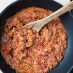 Chauffez une grande poêle en fonte à feu moyen-élevé. Ajoutez 12 onces de boeuf haché maigre et séparez-le avec une cuillère en bois, en remuant fréquemment, jusqu'à ce qu'il soit doré, 5 à 7 minutes. Retirez la poêle du feu, poussez la viande sur un côté de la poêle, et inclinez-la soigneusement. Écumez et jetez tout excès de graisse.
