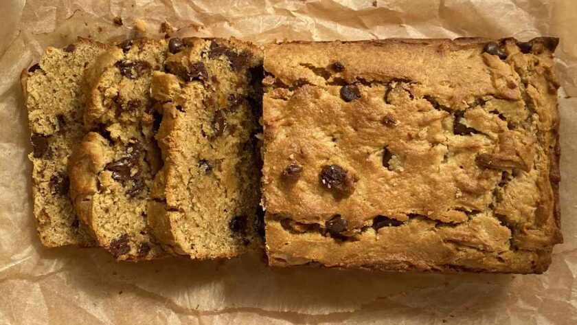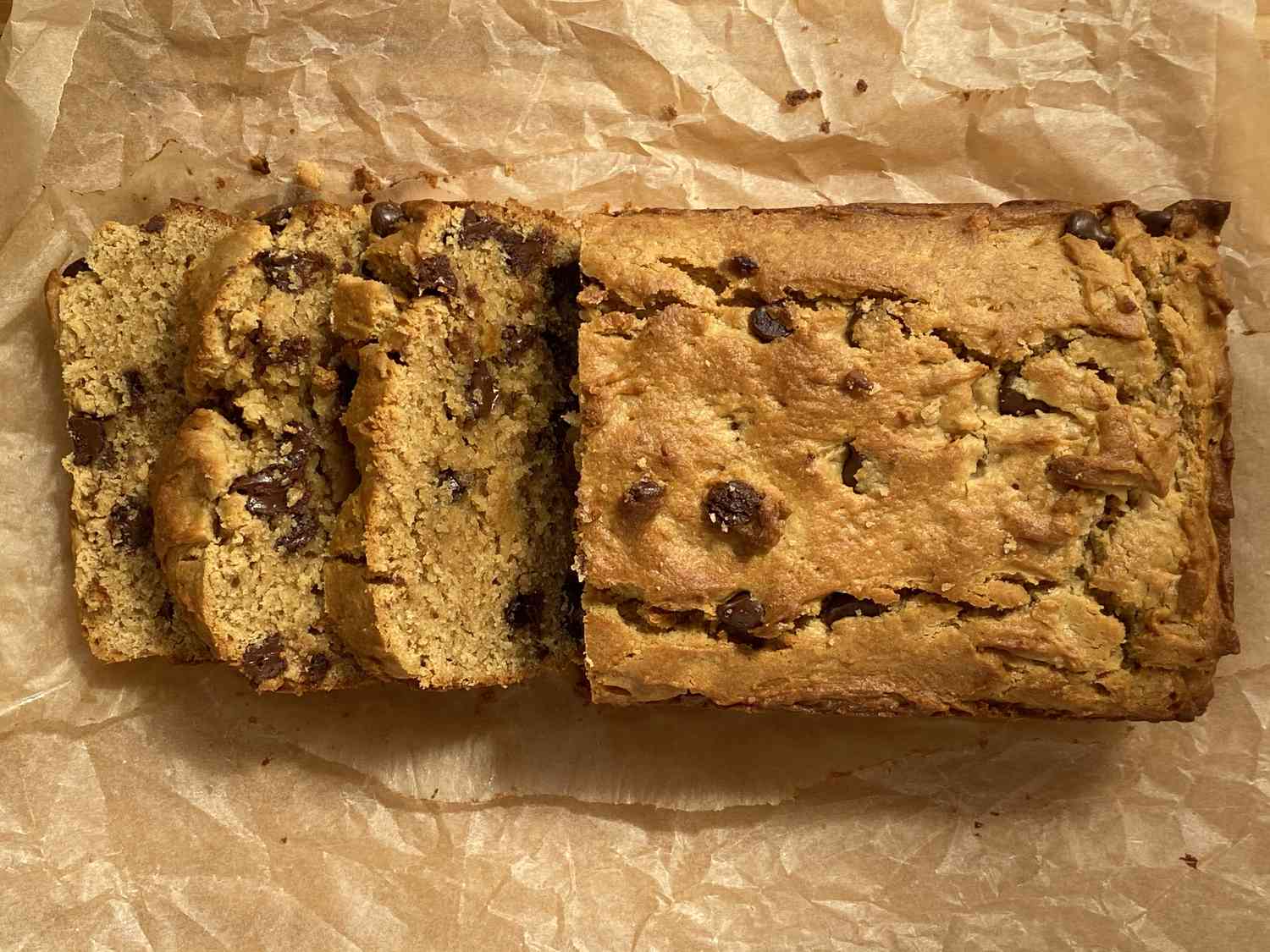 Pain au beurre de cacahuète avec pépites de chocolat.