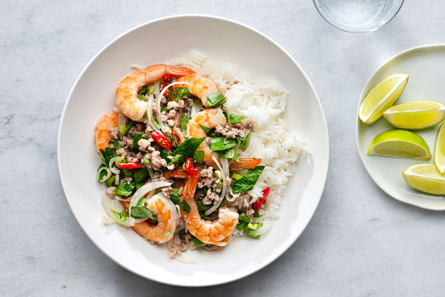 La salade thaïlandaise aux crevettes—également connue sous le nom de Shrimp Yum Goong—est un plat rafraîchissant qui se prépare rapidement et facilement. Il existe de nombreuses variétés de ce type de salade, mais les herbes, les arômes et la vinaigrette restent les mêmes. Les protéines de ces salades sont généralement des fruits de mer et du porc. N'hésitez pas à ajouter des vermicelles à ce plat, car cela lui donne plus de corps et permet d'absorber parfaitement tous les jus et la vinaigrette de la sauce.