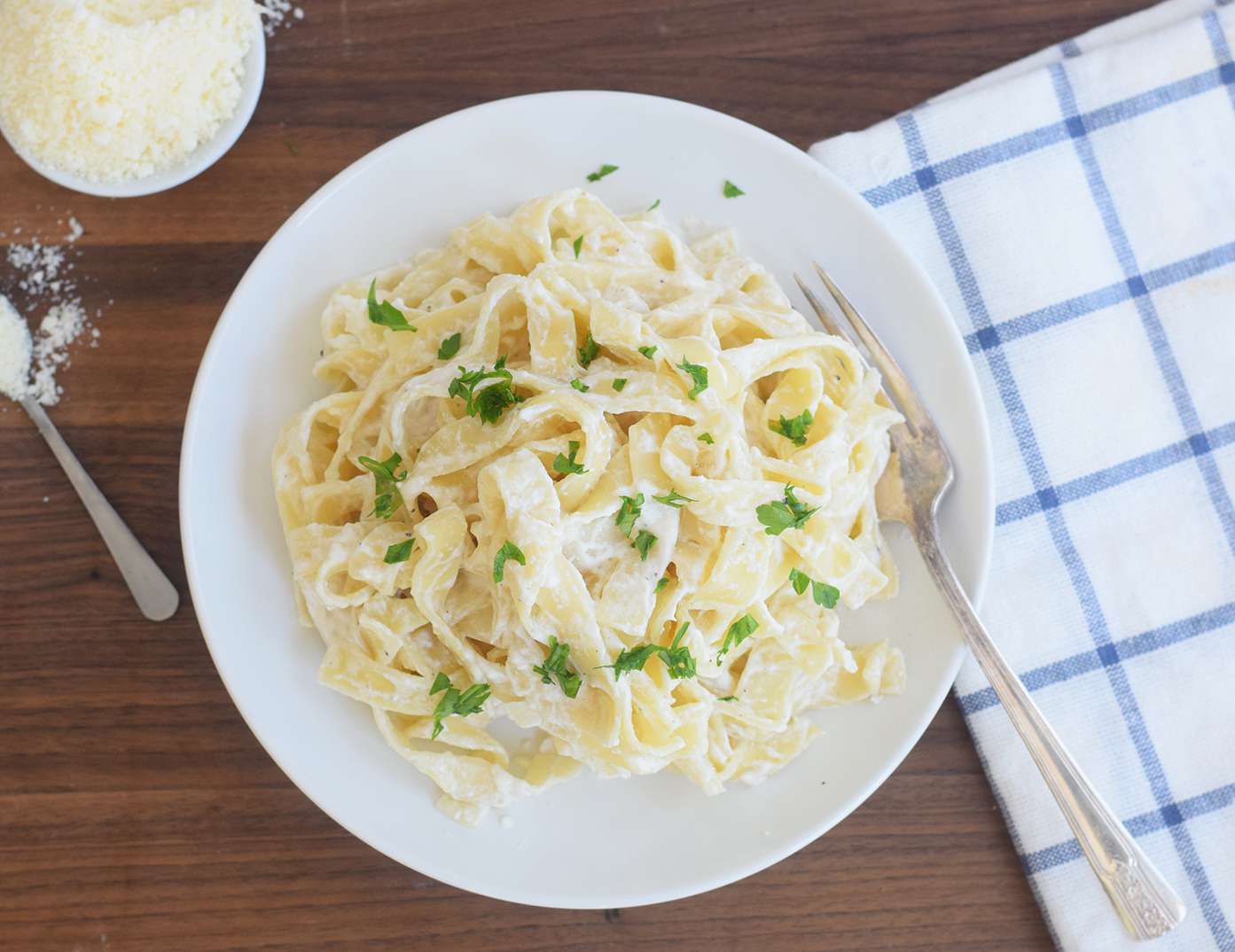 Vous adorez l'alfredo, mais vous préférez une version allégée ? Cette sauce de pâtes au yaourt grec est la solution parfaite. C'est une variante plus saine du classique italo-américain, riche en protéines grâce au yaourt grec sans graisse. Toujours aussi cheesy et onctueuse, vous ne sentirez pas l'absence de crème épaisse et de beurre supplémentaire.