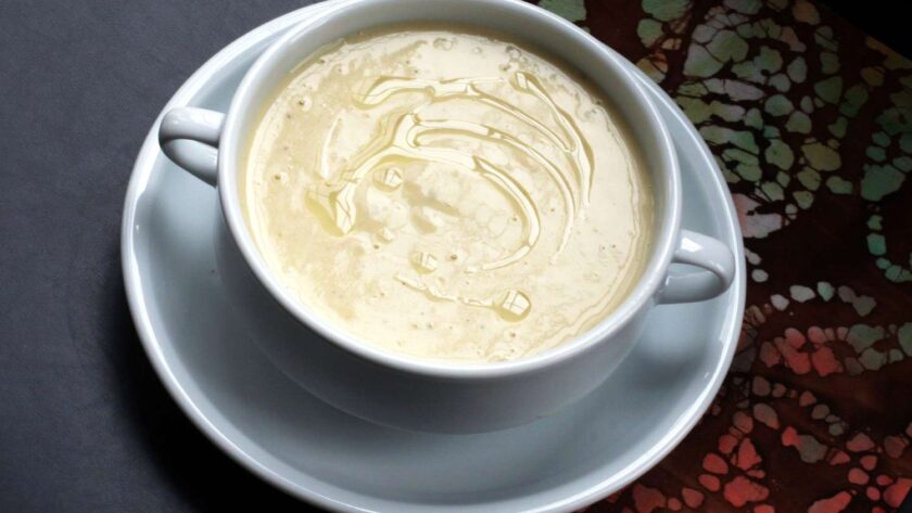 Garnissez cette soupe pleine de saveurs d'un filet d'huile d'olive extra vierge ou, mieux encore, d'huile d'olive infusée au piment ou à l'ail. Elle serait également parfaite avec des croûtons parfumés, de la ciboulette fraîche hachée, un peu de bacon cuit en dés ou un tourbillon de crème aigre ou de purée de poivrons rouges rôtis.