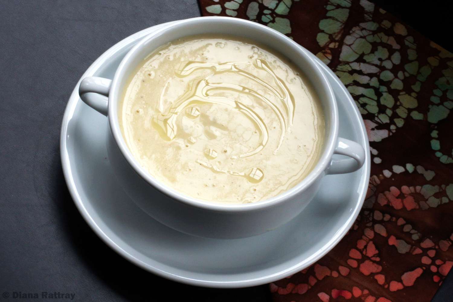 Cette délicieuse soupe est riche et copieuse, avec beaucoup de chou-fleur, de pommes de terre et du fromage Cheddar fort. Un peu de muscade et de piment de Cayenne aident à assaisonner la soupe.