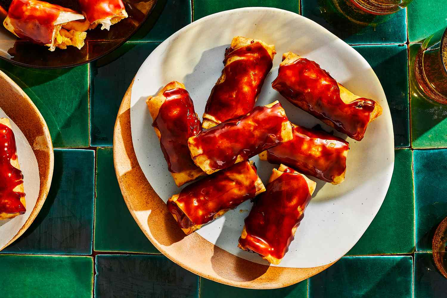 Les bananes saba sont originaires des Philippines et sont plus courtes et plus épaisses que les bananes standard. Elles ont une forme carrée et sont plus riches en amidon, ce qui les rend parfaites pour la cuisine. Les lumpia, que l'on trouve aux Philippines et en Indonésie, sont similaires aux rouleaux de printemps. Leur enveloppe, par rapport aux enveloppes de rouleaux de printemps, est généralement circulaire, plus fine et plus semblable à du papier ou à une texture crépue. Il peut être difficile de se procurer des bananes saba et des enveloppes de lumpia, auquel cas vous pouvez facilement remplacer les bananes ordinaires et les enveloppes de rouleaux de printemps.