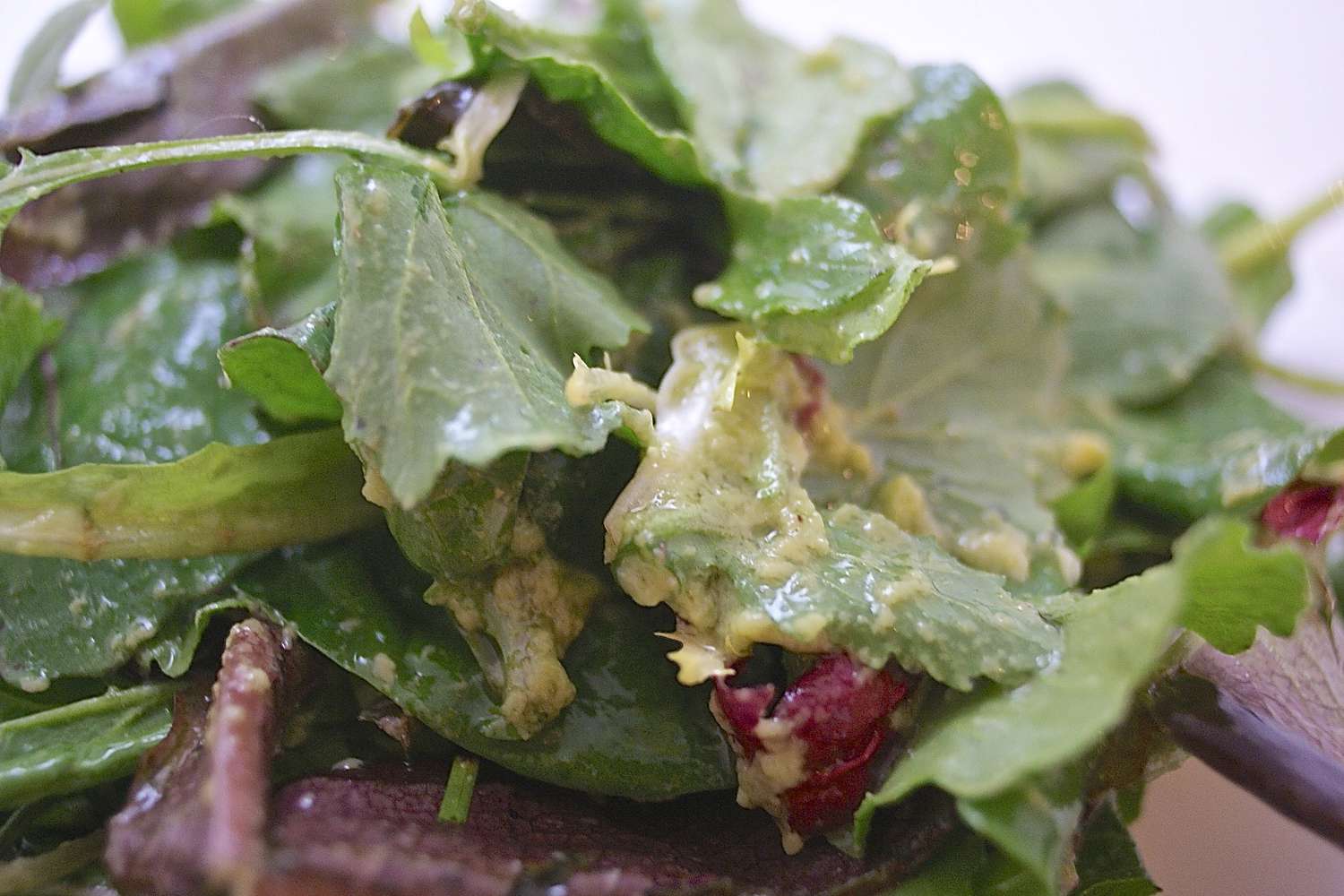 Pour cette vinaigrette, choisissez des avocats mûrs. Ils doivent céder légèrement sous la pression, sans être trop mous, et avoir une peau lisse. Comme les avocats s'oxydent rapidement et changent de couleur du vert vif au gris en quelques minutes, cette vinaigrette est meilleure lorsqu'elle est préparée juste avant de manger la salade. Bien que le vinaigre aide à conserver la couleur verte pendant un certain temps, elle a meilleur goût lorsqu'elle est mélangée à la dernière minute.